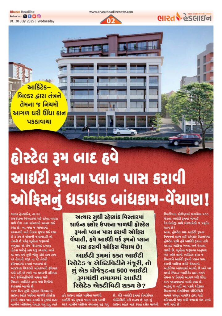 હોસ્ટેલ રૂમ બાદ હવે આઈટી રૂમના પ્લાન પાસ કરાવી ઓફિસનું ધડાધડ બાંધકામ-વેંચાણ!